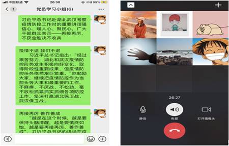 以身作则带好头。各支部的党员同志们,特别是在湖北的党员师生,在会议中以自身为例,强调了严守纪律、服从大局的必要性。大家严格遵循学校的各种防疫规定,加强个人防护,不外出,不聚餐,不参加集体活动。同学们在疫情期间保持正常的作息制度,认真学习线上课程,做好科研和毕业规划。老师们积极响应“停课不停学”的号召,分享了疫情防控期间线上教学的工作体会。教工第二党支部的费跃农老师、刘承香老师、邱洪老师分享了开展线上教学的个人体会,徐颖老师介绍了提高学生网络学习积极性的方法。