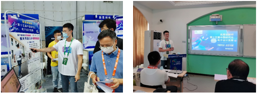 图2 现场作品展示和讲解 图3 专家评审和分组答辩