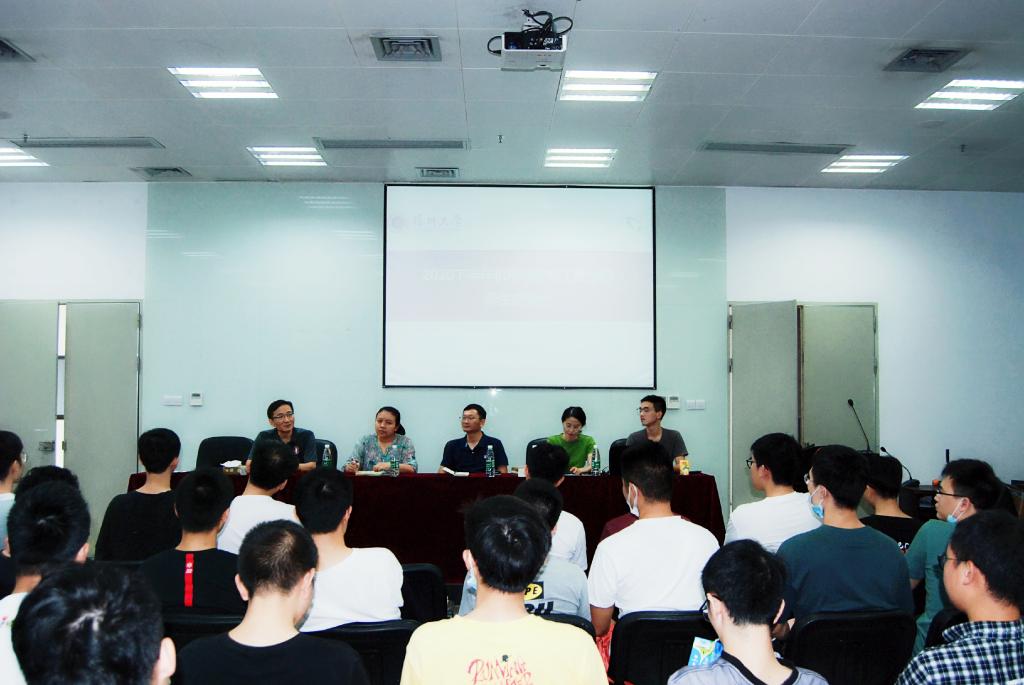 于9月10日上午十点在致信楼S601举办了研究生师生座谈会,参加座谈会的有学院党委邓元龙书记、分管研究生工作的龚峰副院长、分管学生工作的邓琳副书记、研究生科研秘书和辅导员等7位老师以及学院50多名研究生代表。