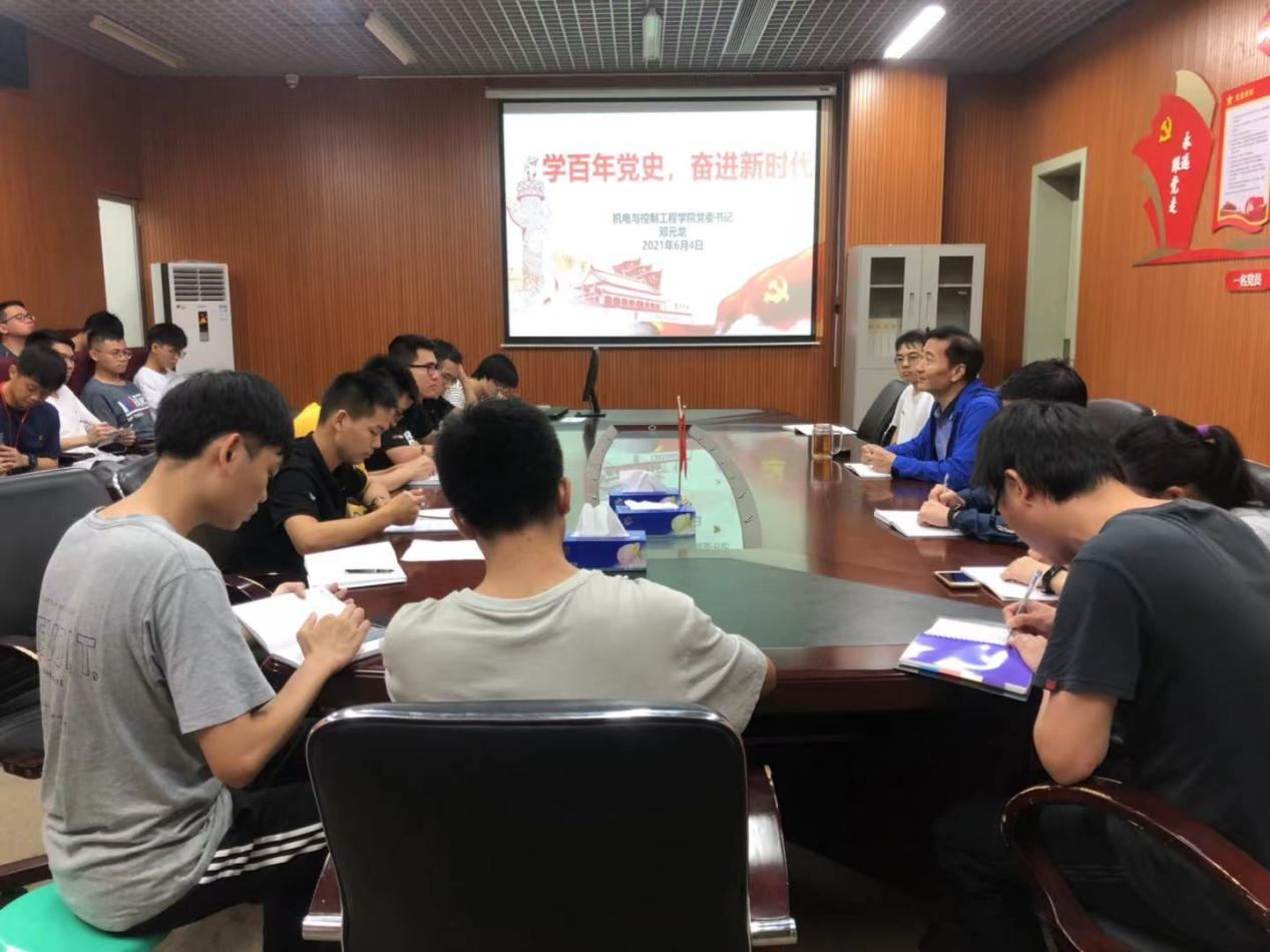2021年6月4日,学院党委书记邓元龙教授在致信楼S512会议室给学院机器视觉研究生党支部和学院学生科创社团师生党员上了一节生动的党课,本次党课的主题是“学百年党史,奋进新时代”。