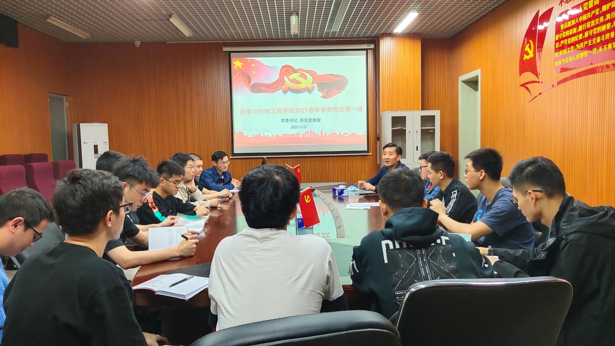 2021年3月11日,邓元龙教授给学院机器视觉研究生党支部学生讲了题为“学党史坚定信念、学知识强化科技创新、为中华民族伟大复兴而奋斗”的思政第一课。