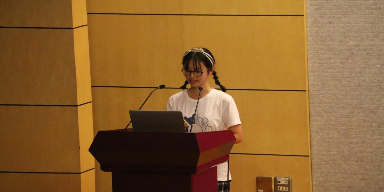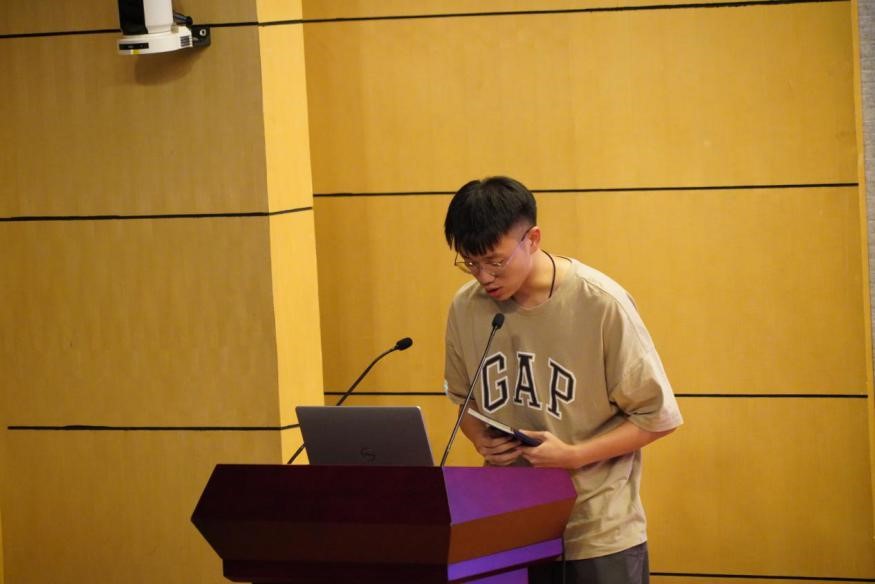 随后,2021级新生代表廖一穗同学分享了她作为“青马先锋团”代表参与迎新活动的经历和感受,认为大学中的同学们应当自信、勇于尝试、勤于开拓,并援引诗句“莫忘少年凌云志,曾许天下第一流”以振奋士气。