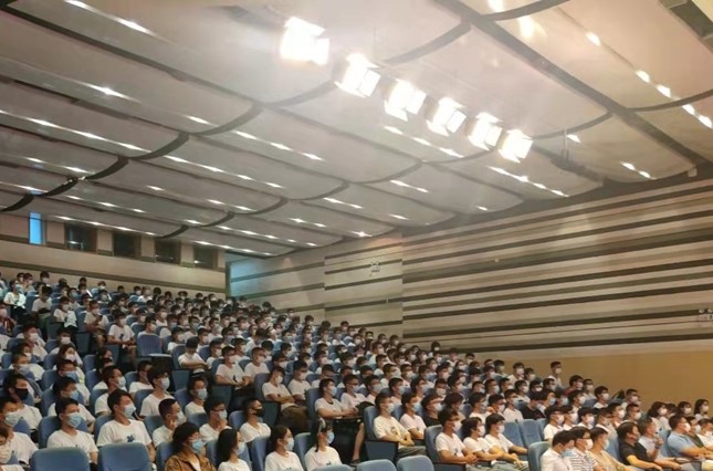在汇星楼举行2021级本科生新生开学典礼暨入学教育。学院党委书记邓元龙、副院长娄燕、党委副书记邓琳、2006届杰出院友周文彬、学科负责人、新生班主任、辅导员及2021级全体本科生新生参加了本次典礼。大会由邓琳副书记主持。