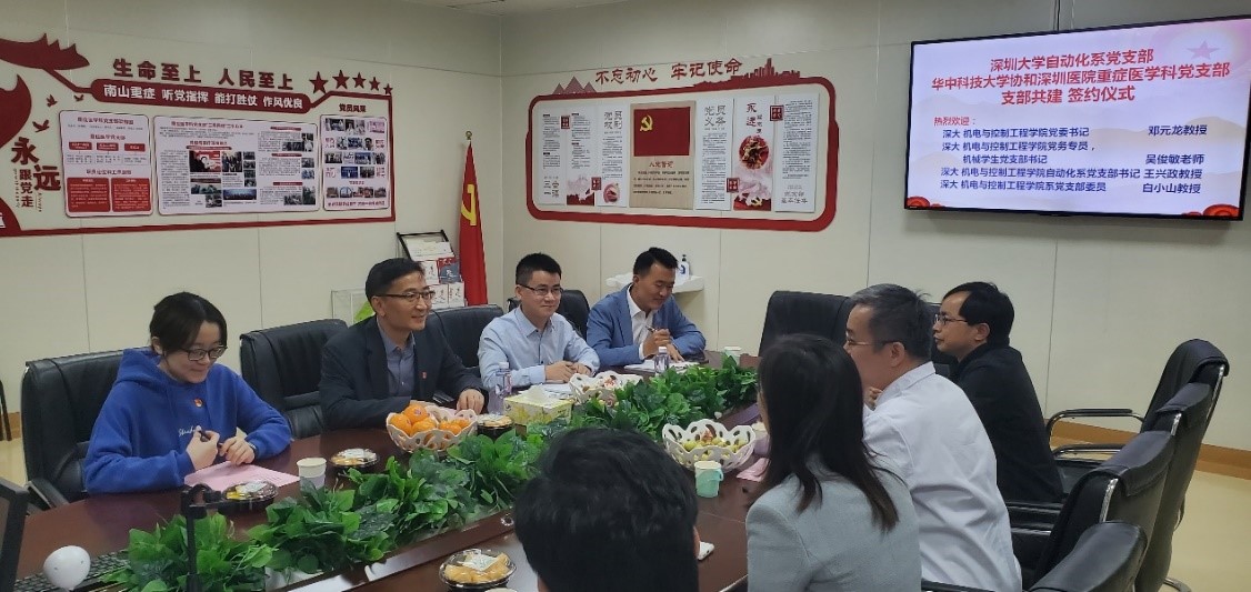 双方就下一步党建工作的互学互访协同开展,包括党建理论共同学习、预防创伤培训、AED救护培训、科普活动,以及自动化与人工智能在重症监护中的应用研究等相关话题展开深入而热烈的交流。最后,双方举行了支部共建的签约仪式。本次结对共建,必将发挥双方党支部的优势互补,提升党支部服务社会服务群众的能力,党建引领业务发展。