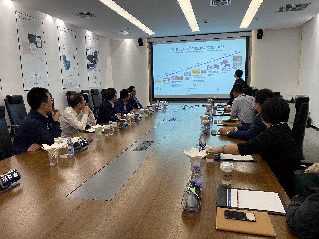 机电学院发展、以及党委工作基本情况,并着重介绍了近年来取得的快速发展、以及党建业务融通互促等工作。柔宇科技张杨洋书记介绍了公司的发展历程,以及基于“柔性+”平台的一系列新型智能终端产品及行业解决方案,并重点介绍了柔宇科技公司在党史教育、党支部建设方面的特色做法。双方还就下一步党建工作的互学互访协同开展内容,包括科技项目联合申报、核心技术攻关、高级人才进修、支部文体活动等话题开展深入而热烈的交流。