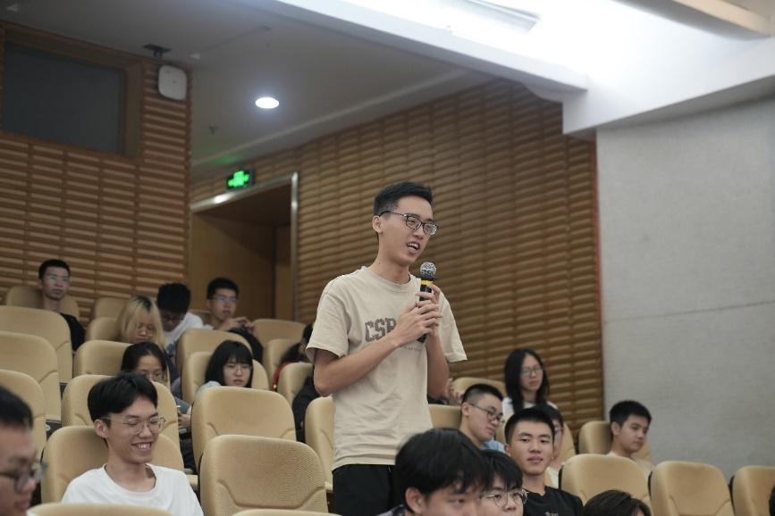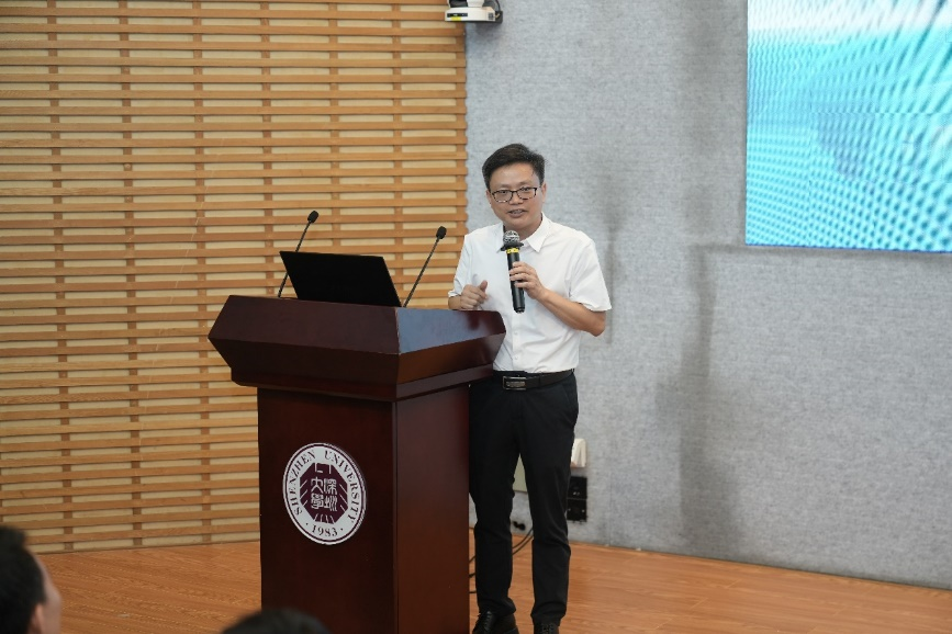 副院长龚峰教授发表了讲话。首先,他对大疆公司一直以来的支持表示感谢,并对所有热爱机器人事业的同学表示了鼓励与欢迎。随后,他肯定了深大 RobotPilots 战队在 RoboMaster 机甲大师赛 2023 赛季中的精彩表现,同时也高度赞赏了他们在机器人技术实践与创新方面的突出贡献。他表示,学院会尽最大努力鼓励学生们参加各类科技社团,并且依托社团参加科技竞赛,同时提升同学们的自主创新能力。最后,他希望 RobotPilots 战队能够继续努力,在新的一年里再创佳绩,并希望越来越多的同学能够参加到创新的队伍当中来,锻炼自己的专业能力,增强团队协作的精神,不断取得新的进步。