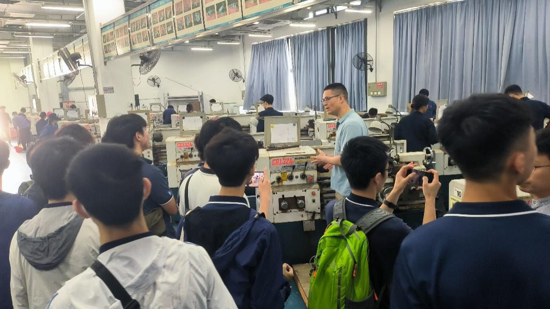 的工程训练中心与先进制造实训室,彭芳锡老师向访问师生介绍了实验室概况并展示了实验课程金工实习及部分设备操作程序。