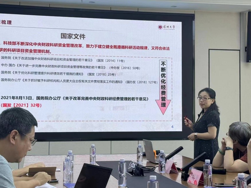 随后,李洁做科研经费政策解读,她着重介绍了经费管理文件的新变化、新要求,建议老师们仔细研读文件,提高科研经费使用效益,保障经费使用安全。