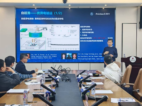 接着,郑泉水院士回顾了自己的学术科研生涯,并详细讲解了超滑技术的源头创新、发展历程、优异特性、产业化应用等方面的情况,以及和不同研究领域潜在的有机融合。然后,学院青年教师针对自己近些年的科研研究依次做了汇报。郑泉水院士肯定了各位老师取得的研究成果,也提出了一些宝贵意见和建议,同时鼓励各位教师要持续努力,无惧失败,在科研上要进一步聚焦其研究方向,找准适合自身的科研赛道。