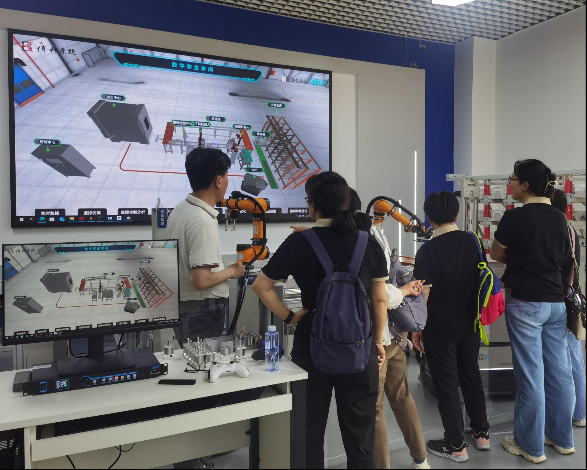 接着鲁忠臣书记一行人分别参观工业机器人虚拟仿真实验室、智能制造产线控制实训平台、高端制造工艺算法实训平台等实验场地。