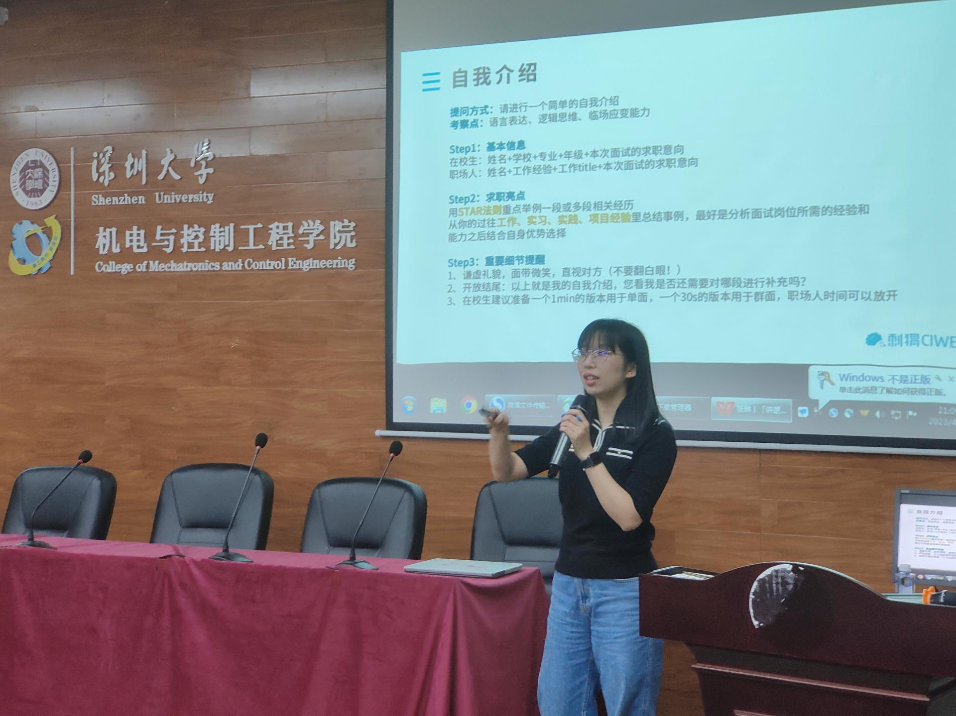 在致信楼S630会议室开展了关于求职面试的逻辑、分析与准备的就业辅导活动。本次讲座由刺猬求职项目运营负责人张琳老师主讲(曾在世界五百强及硅谷独角兽公司工作)。学院2019级和2020级50余名本科生参加了本次活动。