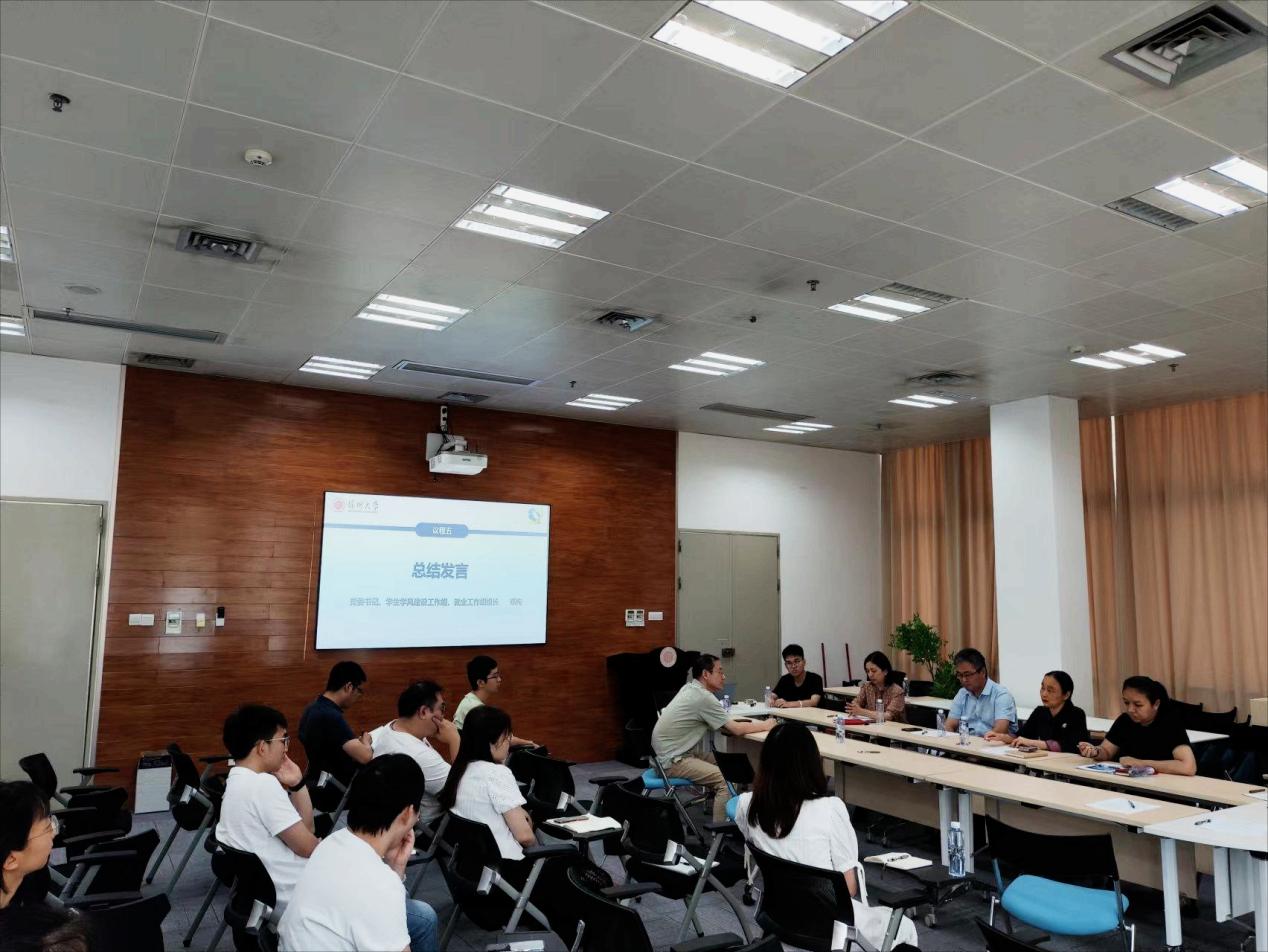 党委副书记邓琳强调,开展学风建设是深入落实“三全育人”重要举措,学院全体教职工都是学风建设中的有生力量,我们要注重学生学习方法的培养,加强学业引导,增强学院学生对学院的认同感和归属感,更好地营造学院氛围。关于就业工作,我们要精准帮扶就业困难的学生,同时也注意涉就业风险的防范。