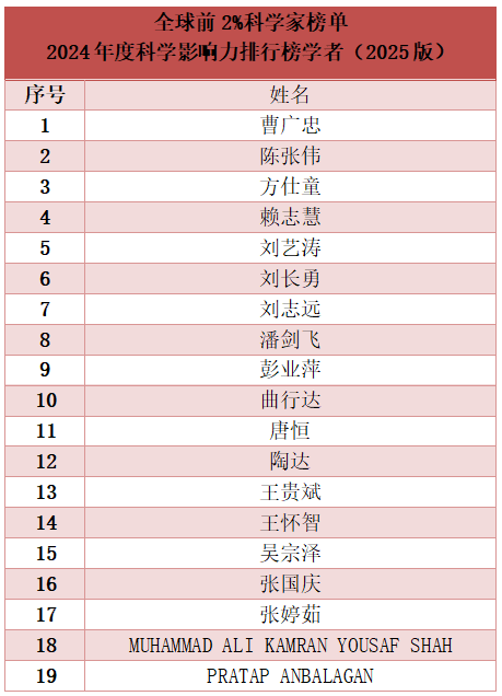 共21位学者入选全球前2%顶尖科学家榜单,其中陈张伟教授、曲行达教授、王怀智副教授共3位学者同时入选了“终身科学影响力排行榜”和“2024年度科学影响力排行榜”。相比去年,麻豆成人