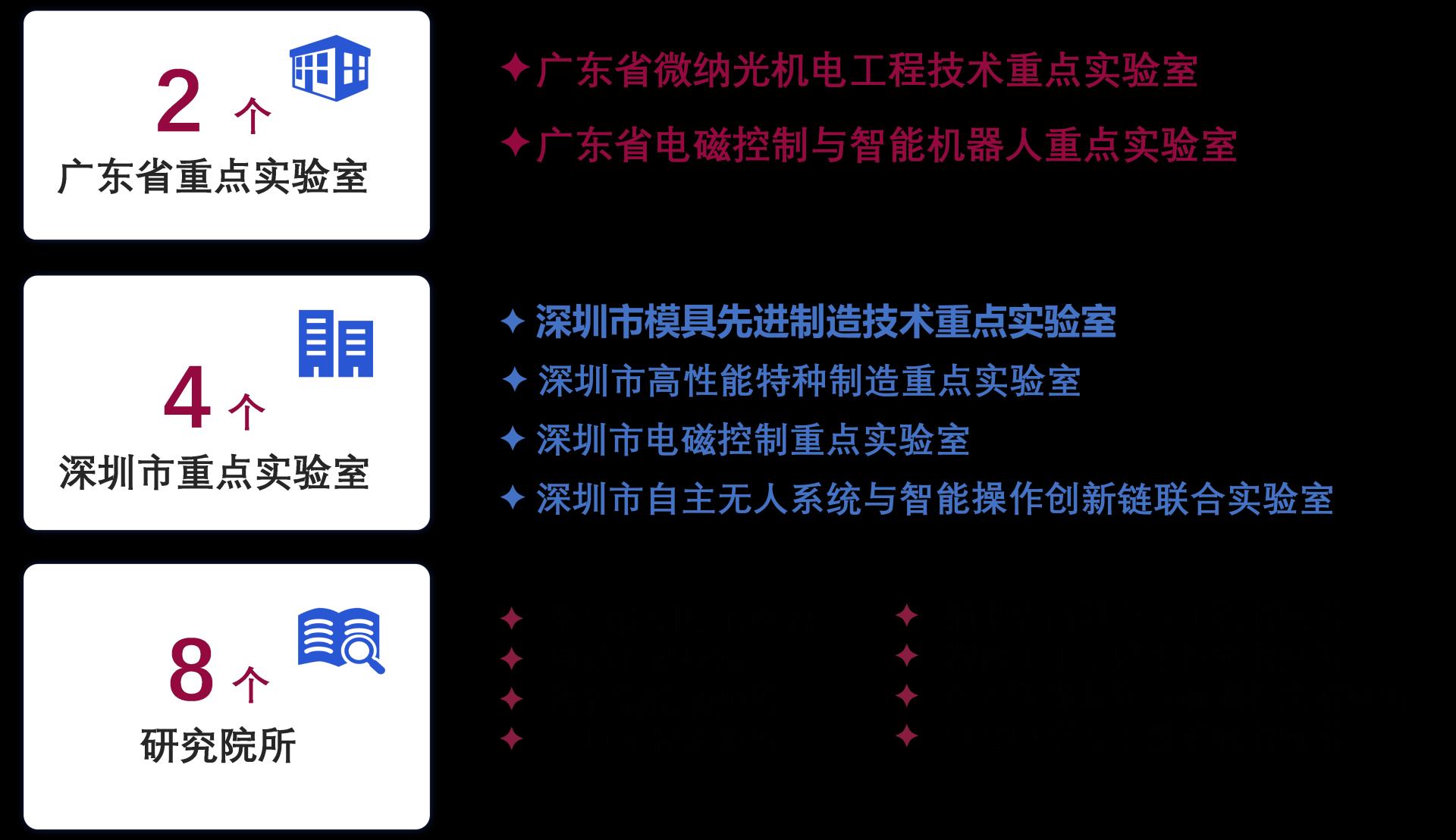 麻豆成人 建有2个广东省重点实验室、4个深圳市重点实验室、8个研究院所和17个校外研究生培养基地(1个国家级、11个省级),为培养高质量研究生提供了重要保障。
