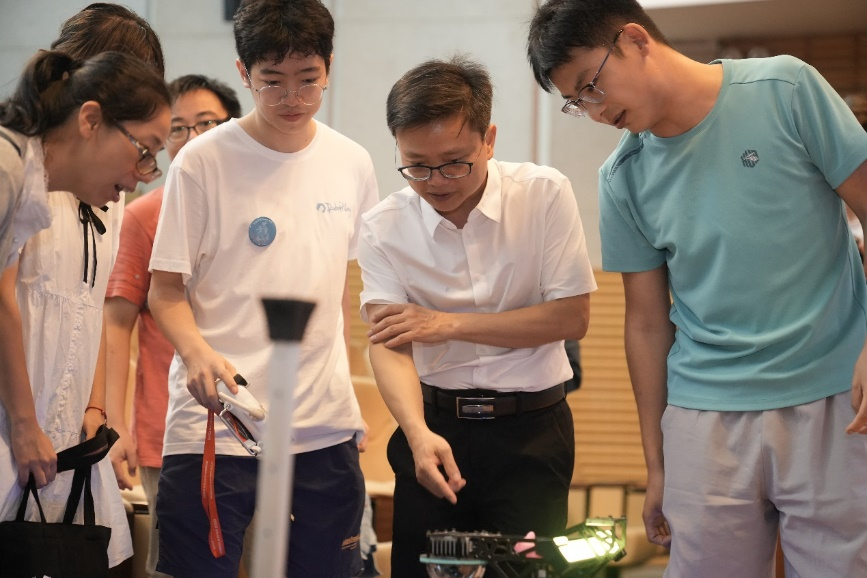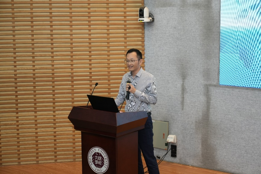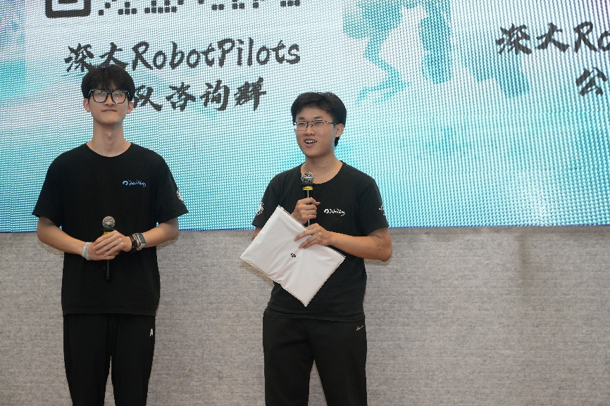副院长龚峰教授发表了讲话。首先,他对大疆公司一直以来的支持表示感谢,并对所有热爱机器人事业的同学表示了鼓励与欢迎。随后,他肯定了深大 RobotPilots 战队在 RoboMaster 机甲大师赛 2023 赛季中的精彩表现,同时也高度赞赏了他们在机器人技术实践与创新方面的突出贡献。他表示,学院会尽最大努力鼓励学生们参加各类科技社团,并且依托社团参加科技竞赛,同时提升同学们的自主创新能力。最后,他希望 RobotPilots 战队能够继续努力,在新的一年里再创佳绩,并希望越来越多的同学能够参加到创新的队伍当中来,锻炼自己的专业能力,增强团队协作的精神,不断取得新的进步。
