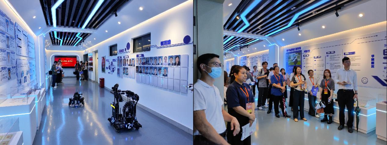 。志愿者将学院精心制作的“智造魔方”纪念品和毕业生信息指南呈送给企业嘉宾。在机器人的带领下,参访队伍缓步走进“智造长廊”,驻足观看学院宣传短片及 RobotPilots 机器人战队比赛视频。RobotPilots 译为“机器人领航者”,每年在全国大学生机器人比赛中获得不俗战绩,旨在通过推广和普及机器人文化和工程师精神,锻炼学生实践能力,培养满足企业和社会发展需求的新时代工程人才。