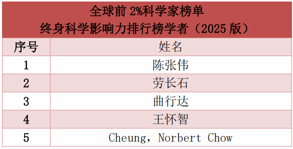 麻豆成人 共21位学者入选全球前2%顶尖科学家榜单,其中陈张伟教授、曲行达教授、王怀智副教授共3位学者同时入选了“终身科学影响力排行榜”和“2024年度科学影响力排行榜”。相比去年,麻豆成人 入选“终身科学影响力排行榜” 和“年度科学影响力排行榜”数量均增加了3名,反映出麻豆成人 科研实力的稳步提升。