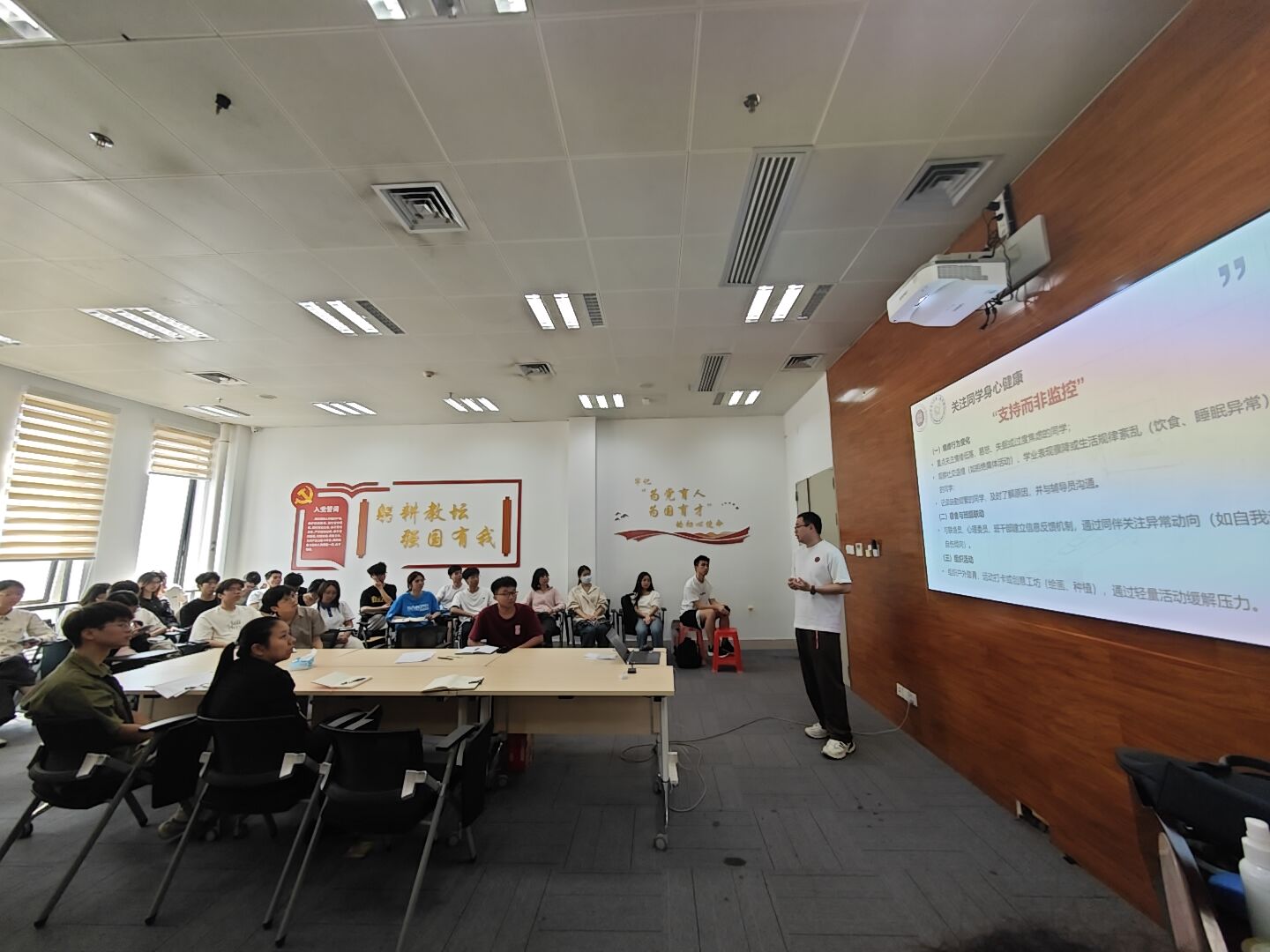 会议强调,新学期班团干部应在班级层面加强对青年学生的思想引领、成长引领和帮困解难。一是要求定期深入宿舍,主动关心身边同学的思想状况、学习状态和心理动态,及时发现并解决同学的困难;二是协助辅导员和班主任开展思想政治教育和社区管理服务,强化心理健康教育、反诈宣传和消防安全教育,提升班级同学的安全防范意识和心理健康素养;三是积极发挥邻里帮扶和朋辈互助作用,积极收集班级同学建议和反馈,并以点带面做好宣讲工作,确保相关政策传达到位。