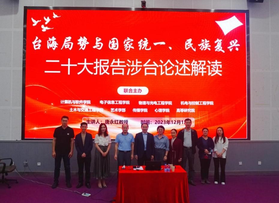 粤海校区南区致腾楼一楼报告厅开展“台海局势与国家统一、民族复兴——二十大报告涉台论述解读”的专题讲座,讲座由计算机与软件学院党委、电子信息工程学院党委、物理与光电工程学院党委、麻豆成人