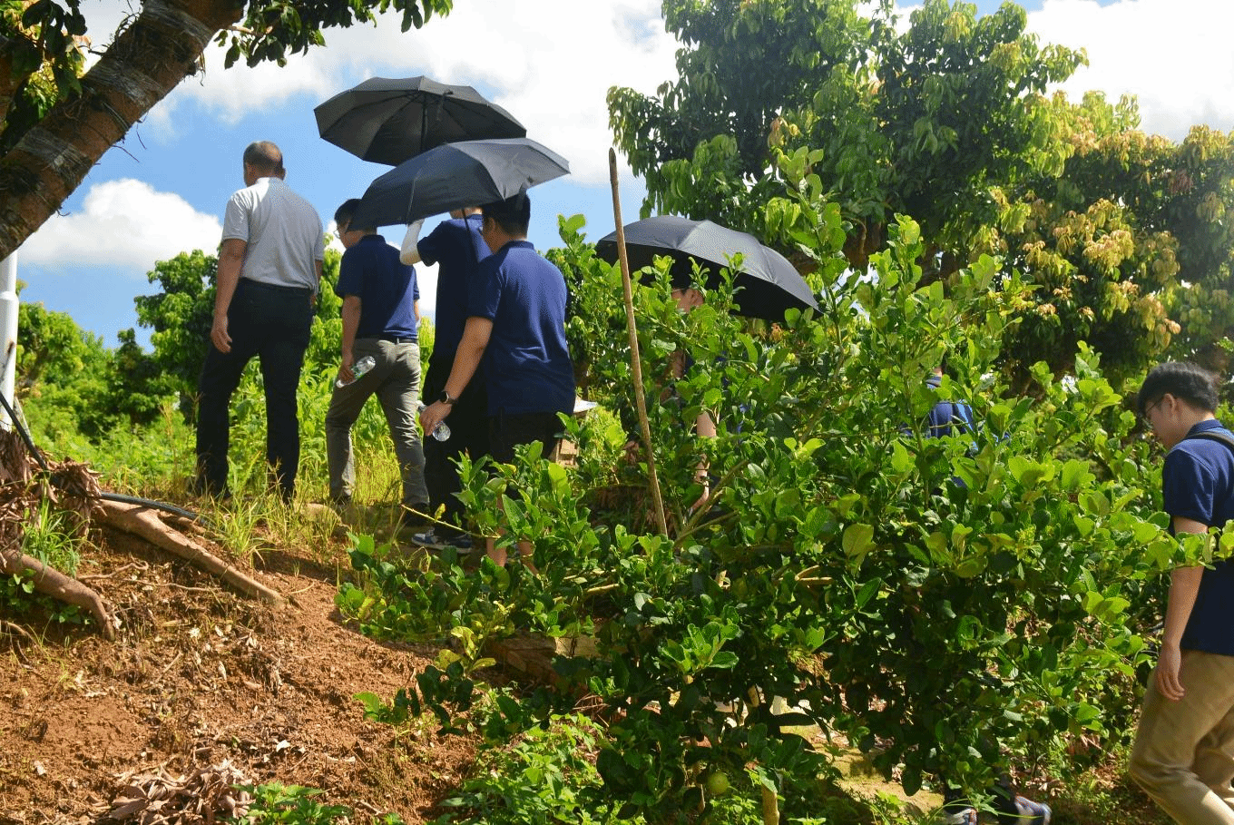 智慧农业有科技,乡村发展添动力。突击队坚持以“脚下多踩泥土,手上勤干实事”为原则,前往博美镇蛟溪村进行实地考察,与当地村支书讨论交流,了解石斛-荔枝立体种植模式存在灌溉不均且需要人工干预等问题,突击队队员对利用物联网等技术对灌溉方式进行技术升级的可行性进行了深入探讨,提出了包括中控系统、前后端和管道设计在内的一整套详细的技术方案,数字赋能农业,科技牵手农村。